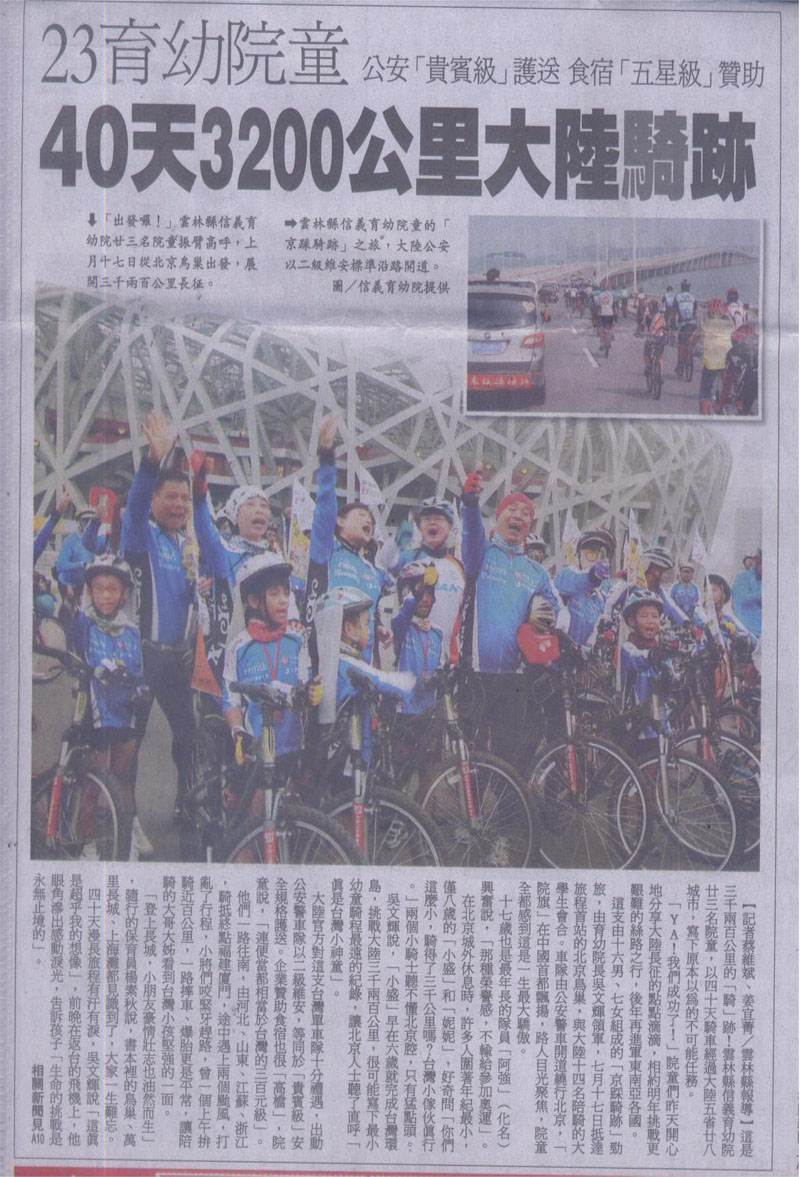 台湾云林县信义育幼院23名孩子脚踩单车,骑经北京、天津、上...